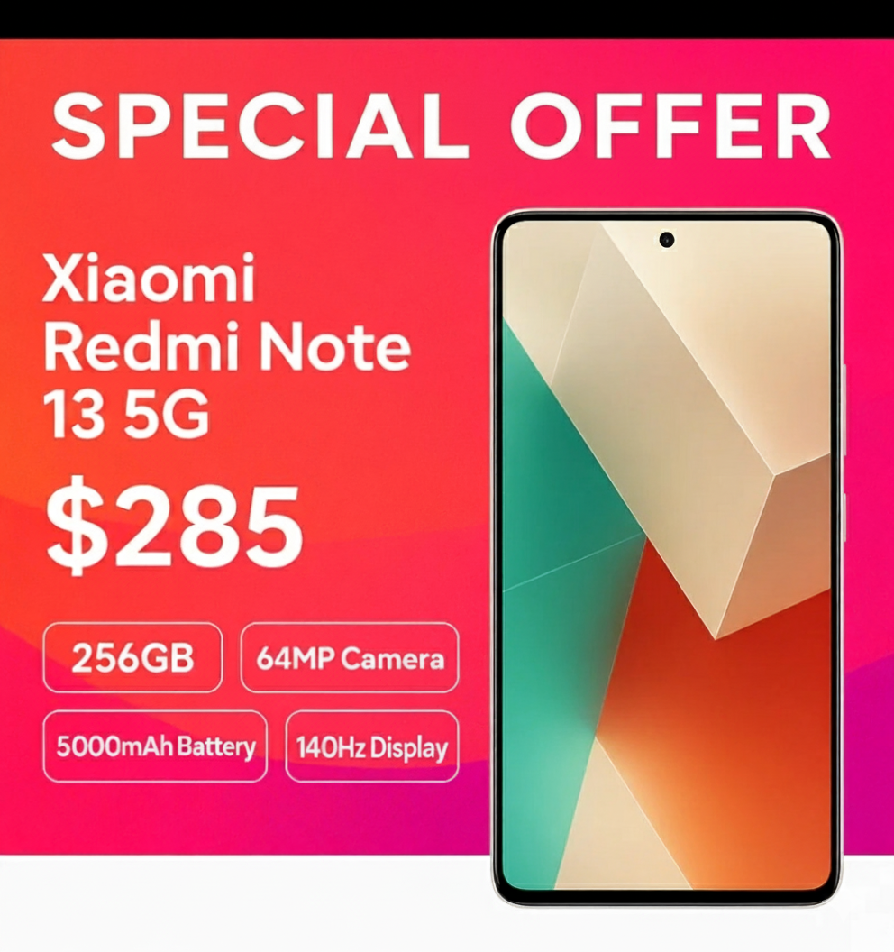 5G Smartphone Global Rom Original Xiaomi Redmi Note 13 256GB Dimensity 6080 Ultra 140Hz LCD Display 64MP Triple Camera 5000mAh